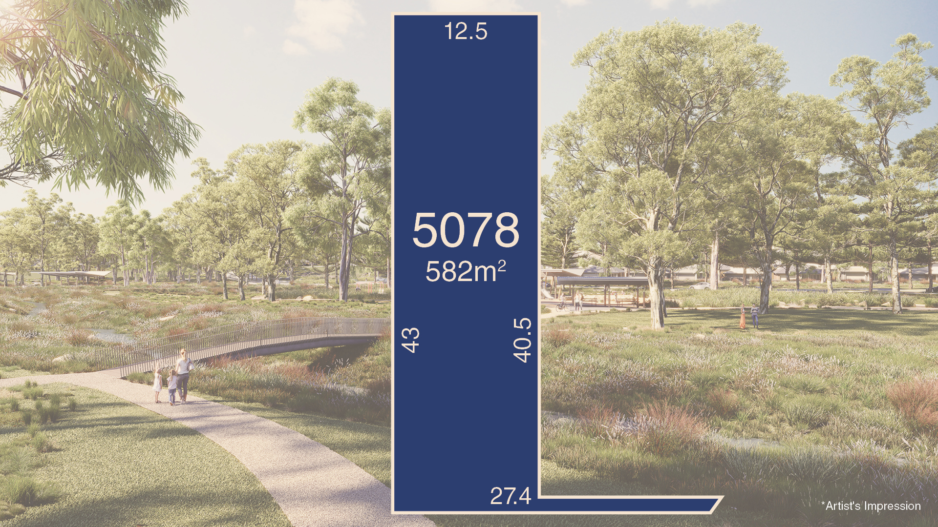 Lot 5078 is a 582qm^ corner block with a 12.5m^ frontage, located within Cobbitty Green, the first stage of Cobbitty by Mirvac.